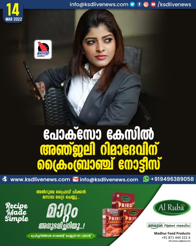 പോക്സോ കേസില് പ്രതി അഞ്ജലി റിമാദേവിന് ക്രൈംബ്രാഞ്ച് നോട്ടീസ്