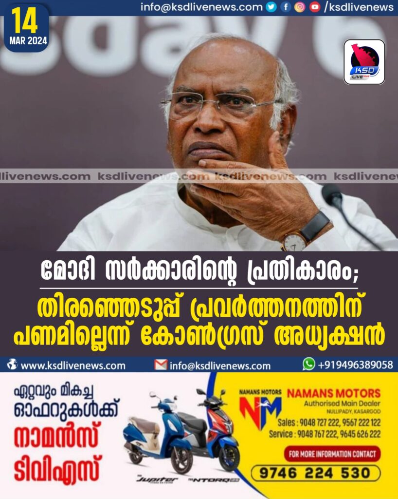 മോദി സര്ക്കാരിന്റെ പ്രതികാരം; തിരഞ്ഞെടുപ്പ് പ്രവര്ത്തനത്തിന് പണമില്ലെന്ന് കോണ്ഗ്രസ് അധ്യക്ഷന്