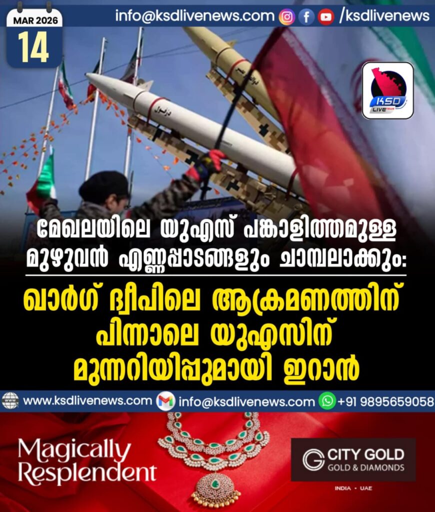 മേഖലയിലെ യുഎസ് പങ്കാളിത്തമുള്ള മുഴുവന് എണ്ണപ്പാടങ്ങളും ചാമ്പലാക്കും: ഖാര്ഗ് ദ്വീപിലെ ആക്രമണത്തിന് പിന്നാലെ യുഎസിന് മുന്നറിയിപ്പുമായി ഇറാൻ