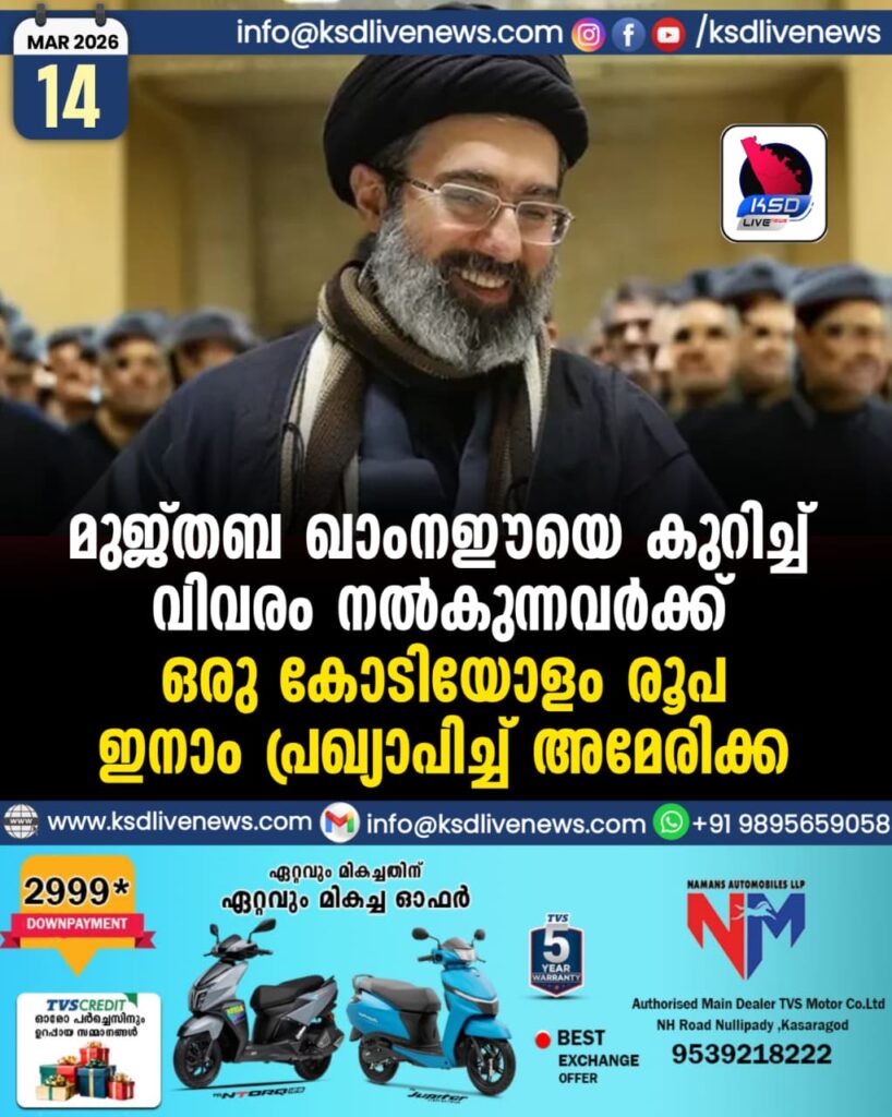 മുജ്തബ ഖാംനഈയെ കുറിച്ച് വിവരം നൽകുന്നവർക്ക് ഒരു കോടിയോളം രൂപ ഇനാം പ്രഖ്യാപിച്ച് അമേരിക്ക