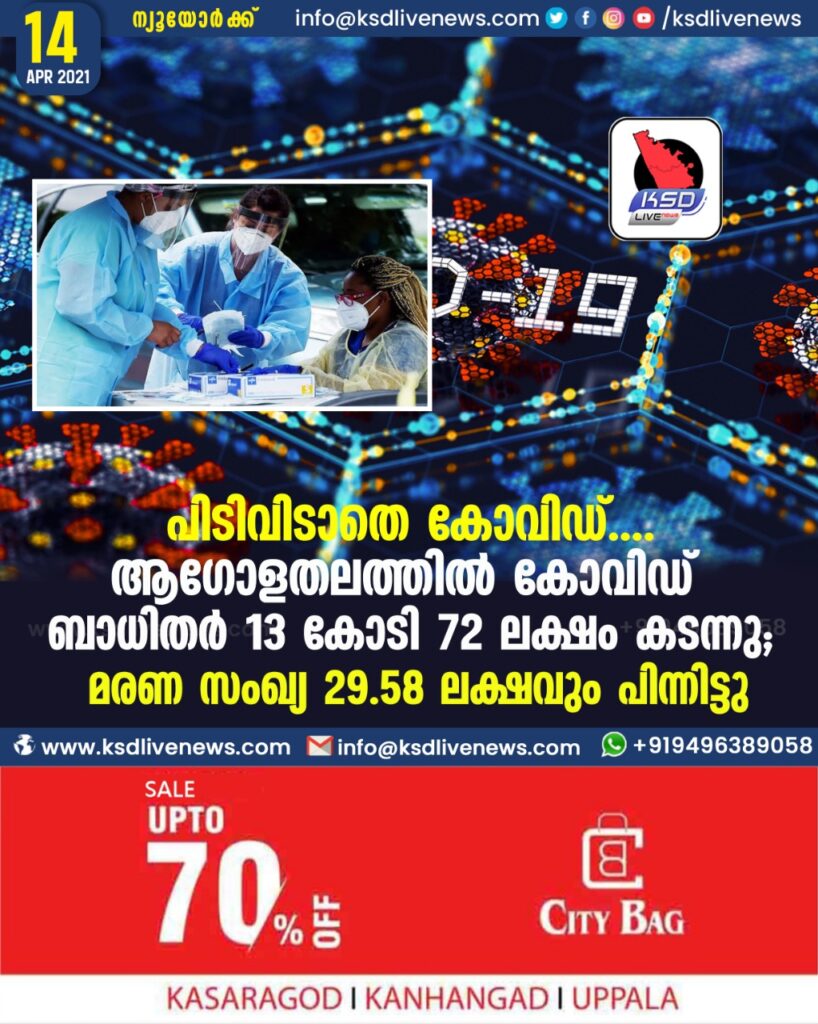 ആഗോളതലത്തിൽ കോവിഡ് ബാധിതരുടെ എണ്ണം 13 കോടി 72 ലക്ഷം കടന്നു ; മരണ സംഖ്യ 29.58 ലക്ഷവും പിന്നിട്ടു