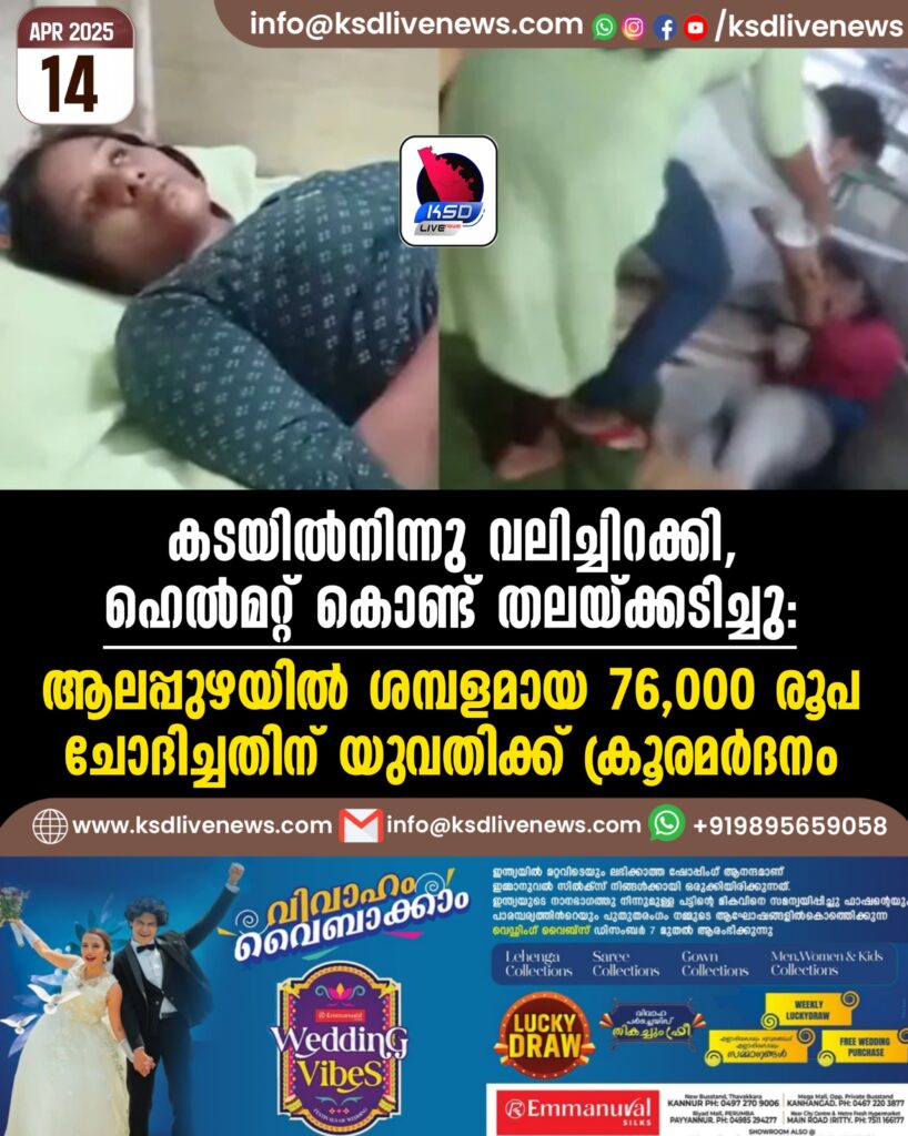 കടയിൽനിന്നു വലിച്ചിറക്കി, ഹെൽമറ്റ് കൊണ്ട് തലയ്ക്കടിച്ചു: ആലപ്പുഴയിൽ ശമ്പളമായ 76,000 രൂപ ചോദിച്ചതിന് യുവതിക്ക് ക്രൂരമർദനം