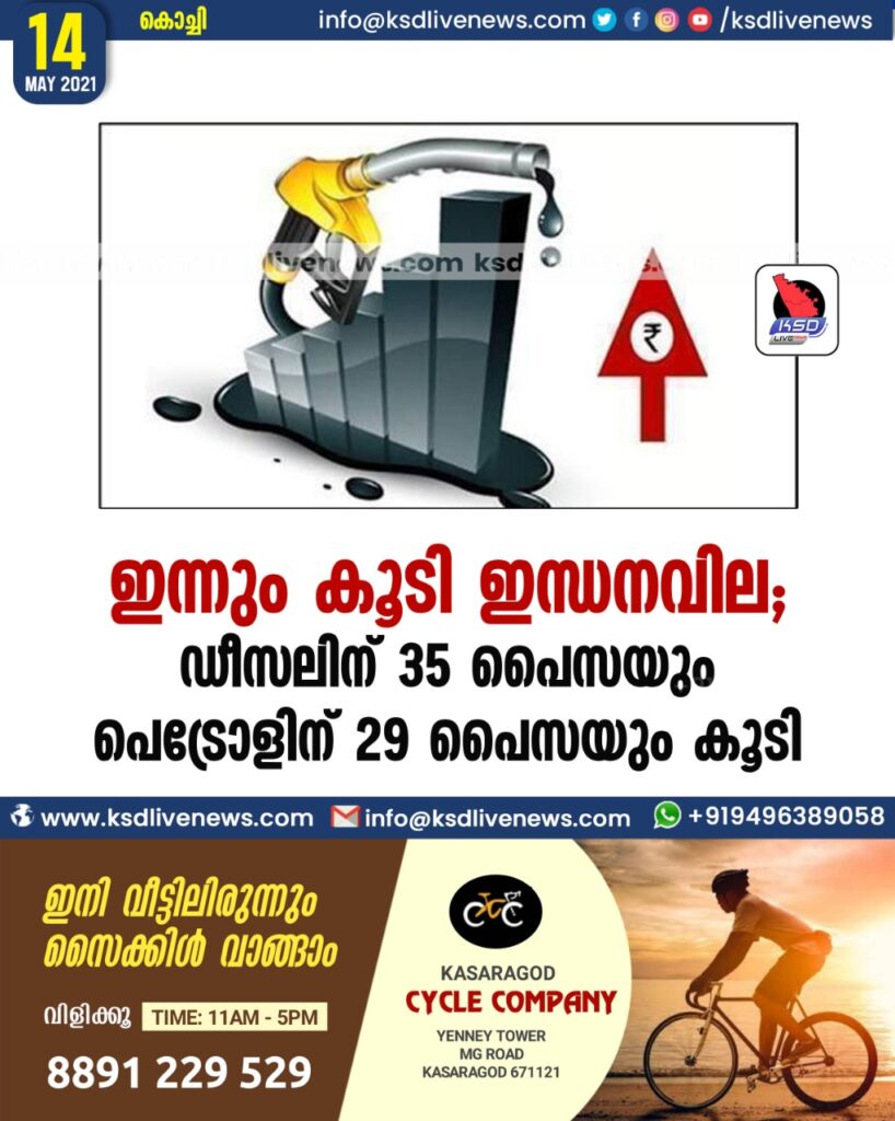 ഇന്നും കൂടി ഇന്ധനവില; ഡീസലിന് 35 പൈസയും പെട്രോളിന് 29 പൈസയും കൂടി