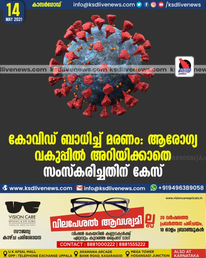 കോവിഡ് ബാധിച്ച് മരണം: ആരോഗ്യ വകുപ്പിൽ അറിയിക്കാതെ സംസ്കരിച്ചതിന് കേസ്