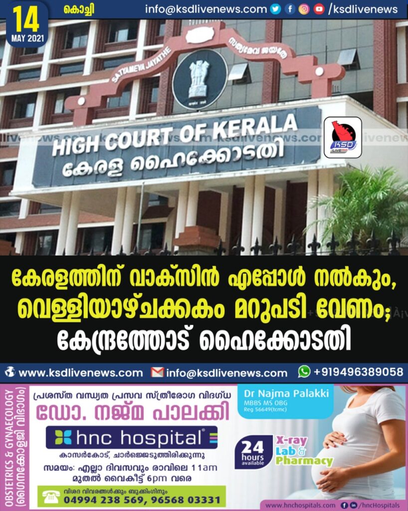 കേരളത്തിന് വാക്സിന് എപ്പോള് നല്കും? വെള്ളിയാഴ്ചക്കകം മറുപടി വേണം; കേന്ദ്രത്തോട് ഹൈക്കോടതി