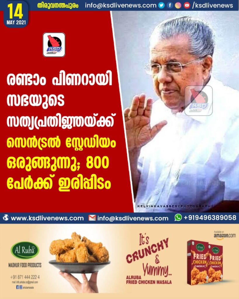 രണ്ടാം പിണറായി സഭയുടെ സത്യപ്രതിജ്ഞയ്ക്ക് സെന്ട്രല് സ്റ്റേഡിയം ഒരുങ്ങുന്നു; 800 പേര്ക്ക് ഇരിപ്പിടം