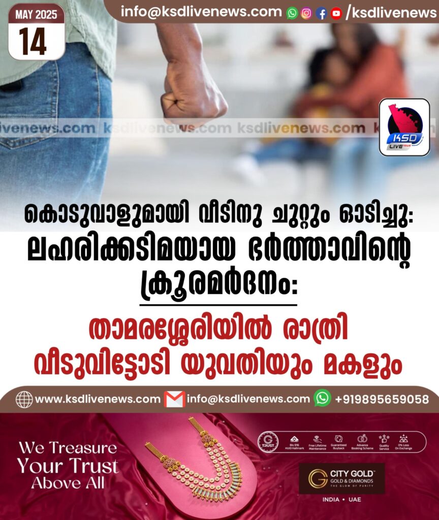 കൊടുവാളുമായി വീടിനു ചുറ്റും ഓടിച്ചു’ ലഹരിക്കടിമയായ ഭർത്താവിന്റെ ക്രൂരമർദനം; താമരശ്ശേരിയിൽ രാത്രി വീടുവിട്ടോടി യുവതിയും മകളും
