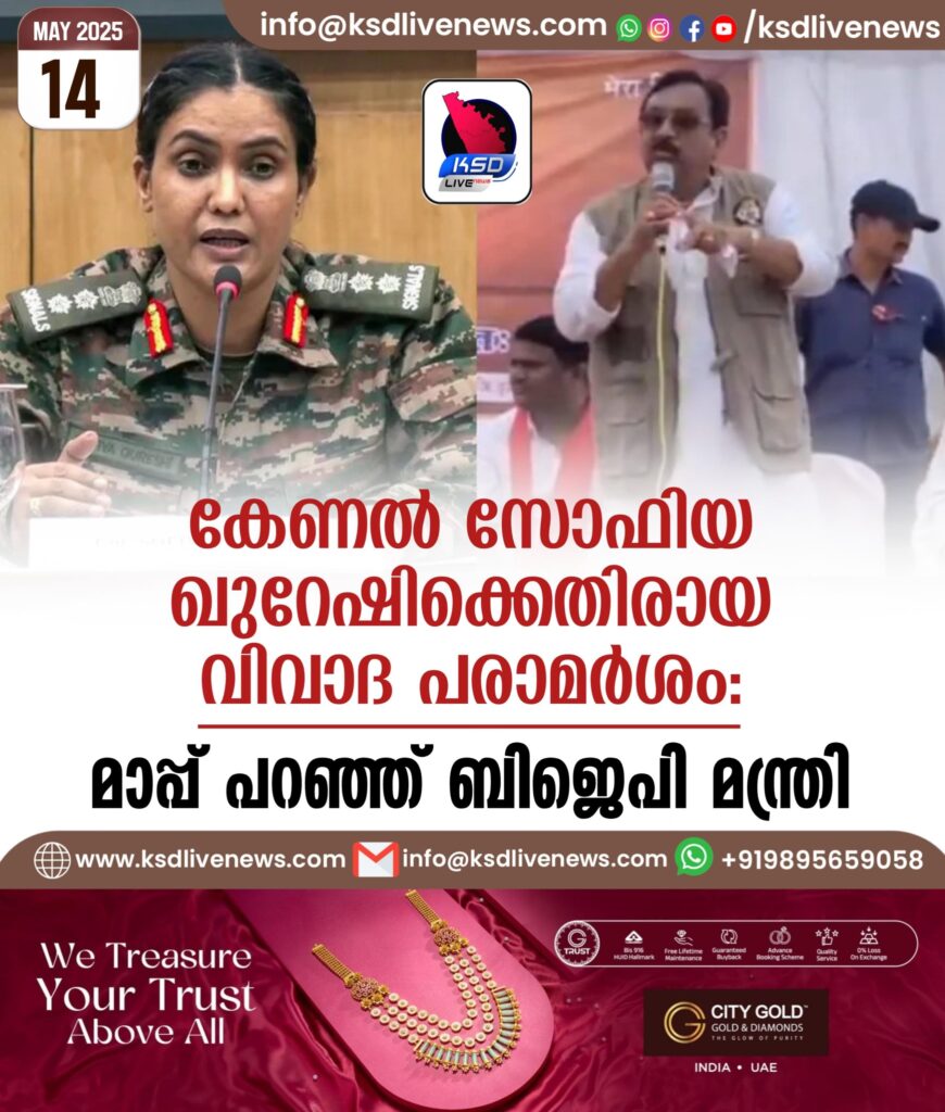 കേണൽ സോഫിയ ഖുറേഷിക്കെതിരായ വിവാദ പരാമർശം: മാപ്പ് പറഞ്ഞ് ബിജെപി മന്ത്രി