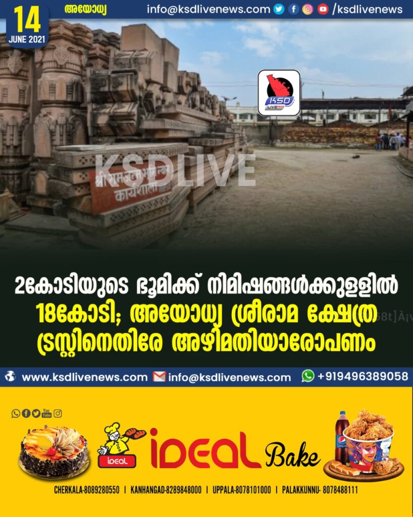 2കോടിയുടെ ഭൂമിക്ക് നിമിഷങ്ങള്ക്കുളളില് 18കോടി;അയോധ്യ ശ്രീരാമക്ഷേത്രട്രസ്റ്റിനെതിരേ അഴിമതിയാരോപണം