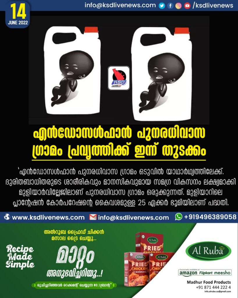 എന്ഡോസള്ഫാന് പുനരധിവാസ ഗ്രാമം പ്രവൃത്തിക്ക് ഇന്ന് തുടക്കം