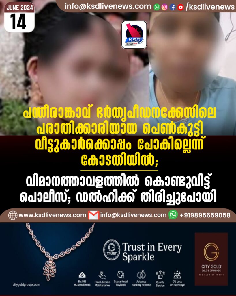 പന്തീരാങ്കാവ് ഭർതൃപീഡനക്കേസിലെ പരാതിക്കാരിയായ പെൺകുട്ടിവീട്ടുകാർക്കൊപ്പം പോകില്ലെന്ന് കോടതിയിൽ; വിമാനത്താവളത്തിൽ കൊണ്ടുവിട്ട് പൊലീസ്; ഡൽഹിക്ക് തിരിച്ചുപോയി