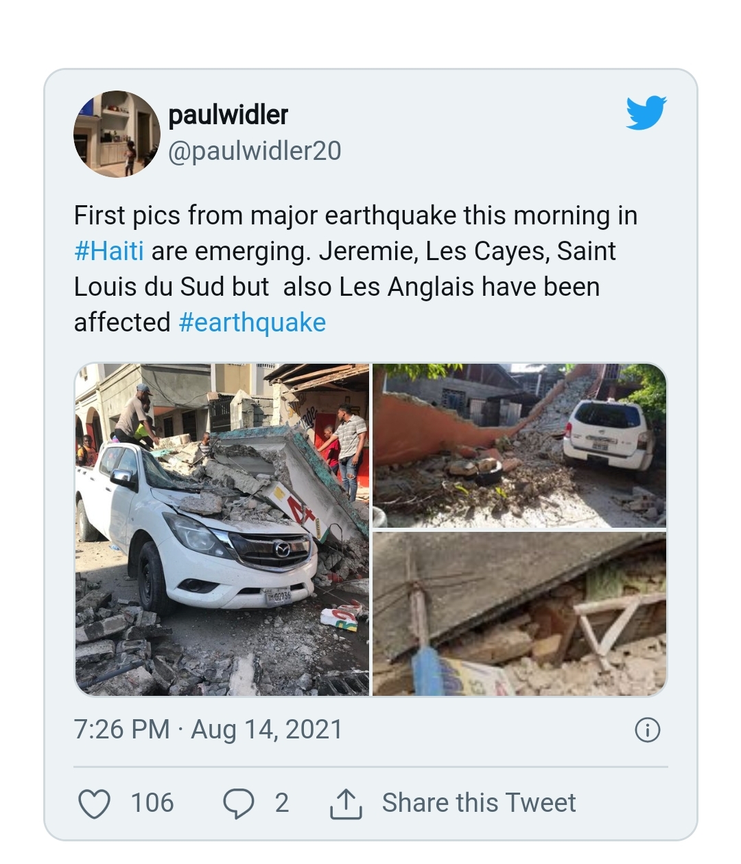 ഹെയ്തിയിൽ ശക്തമായ ഭൂചലനം, 7.2 രേഖപ്പെടുത്തി, സുനാമി മുന്നറിയിപ്പ്