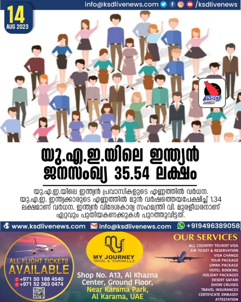 യു.എ.ഇ. യിലെ ഇന്ത്യൻ ജനസംഖ്യ 35.54 ലക്ഷം