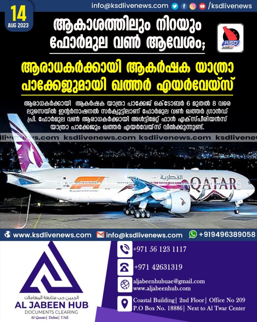 ആകാശത്തിലും നിറയും ഫോർമുല വൺ ആവേശം; ആരാധകർക്കായി ആകർഷക യാത്രാ പാക്കേജുമായി ഖത്തർ എയർവേയ്സ്