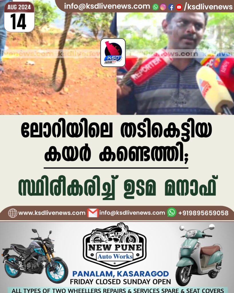 ലോറിയിലെ തടികെട്ടിയ കയര് കണ്ടെത്തി, സ്ഥിരീകരിച്ച് ഉടമ മനാഫ്