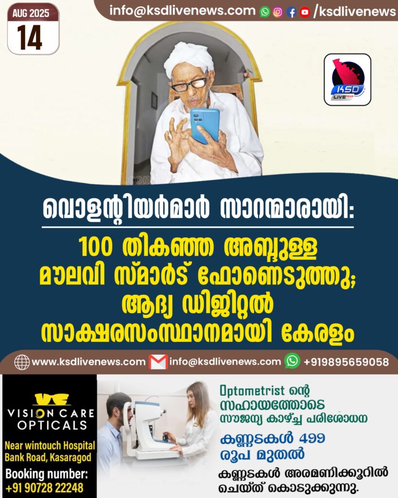 വൊളന്റിയർമാർ സാറന്മാരായി, 100 തികഞ്ഞ അബ്ദുള്ള മൗലവി സ്മാർട് ഫോണെടുത്തു; ആദ്യ ഡിജിറ്റൽ സാക്ഷരസംസ്ഥാനമായി കേരളം