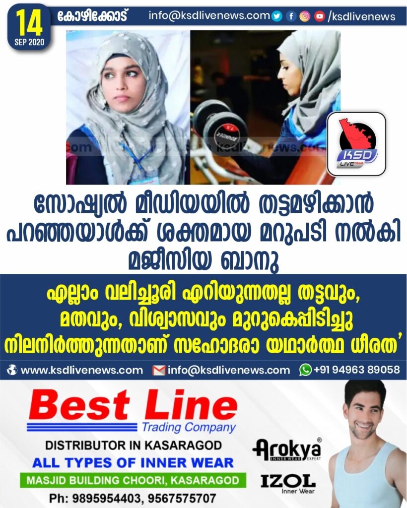 സോഷ്യൽ മീഡിയയിൽ തട്ടമഴിക്കാൻ പറഞ്ഞയാൾക്ക് ശക്തമായ മറുപടി നൽകി മജീസിയ ബാനു ;