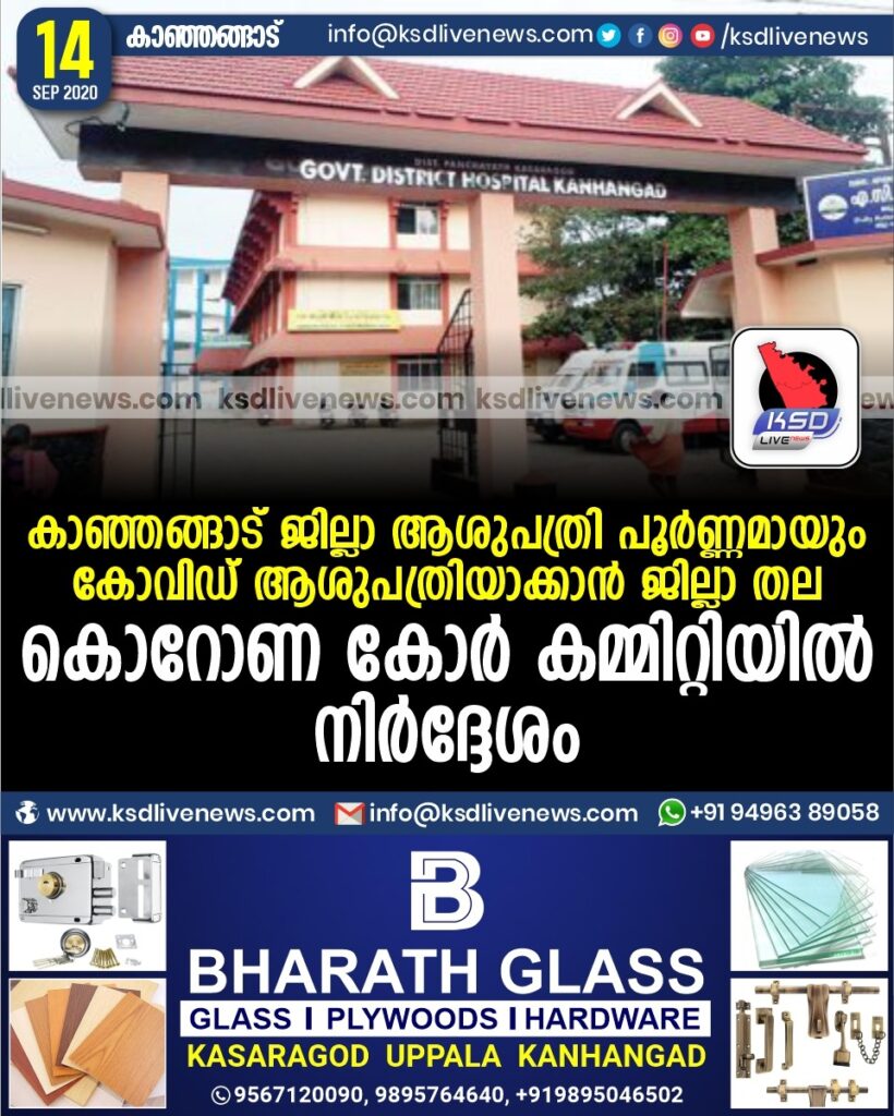 കാഞ്ഞങ്ങാട് ജില്ലാ ആശുപത്രി പൂർണ്ണമായും കോവിഡ് ആശുപത്രിയാക്കാൻ ജില്ലാ തല കൊറോണ കോർ കമ്മിറ്റിയിൽ നിർദ്ദേശം