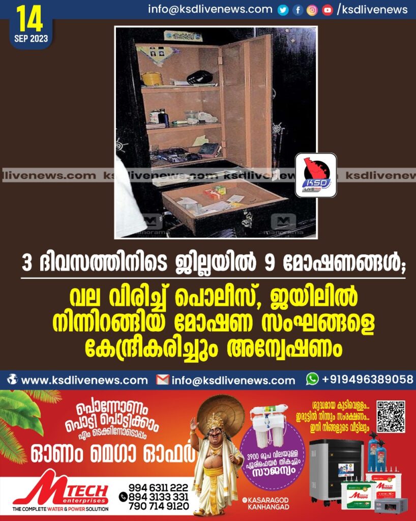 3 ദിവസത്തിനിടെ ജില്ലയിൽ 9 മോഷണങ്ങൾ; വല വിരിച്ച് പൊലീസ്, ജയിലിൽ നിന്നിറങ്ങിയ മോഷണ സംഘങ്ങളെ കേന്ദ്രീകരിച്ചും അന്വേഷണം
