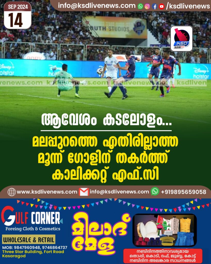 ആവേശം കടലോളം… മലപ്പുറത്തെ എതിരില്ലാത്ത മൂന്ന് ഗോളിന് തകര്ത്ത് കാലിക്കറ്റ് എഫ്.സി