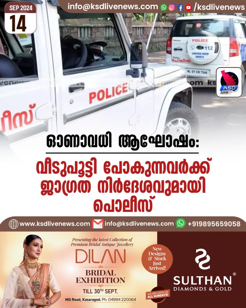 ഓണാവധി ആഘോഷം: വീടുപൂട്ടി പോകുന്നവര്ക്ക് ജാഗ്രതനിര്ദേശവുമായി പൊലീസ്
