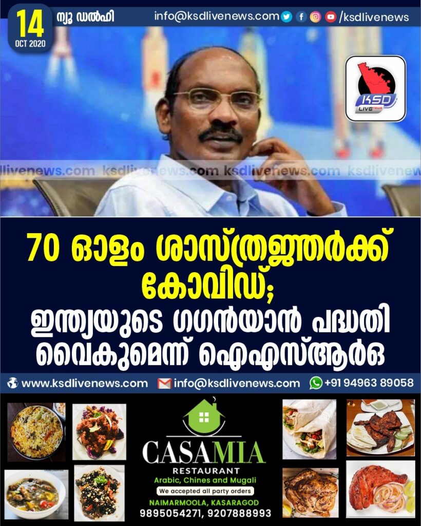 70 ഓളം ശാസ്ത്രജ്ഞർക്ക് കോവിഡ് ; ഇന്ത്യയുടെ ഗഗൻയാൻ പദ്ധതി വൈകുമെന്ന് ഐഎസ്ആർഒ