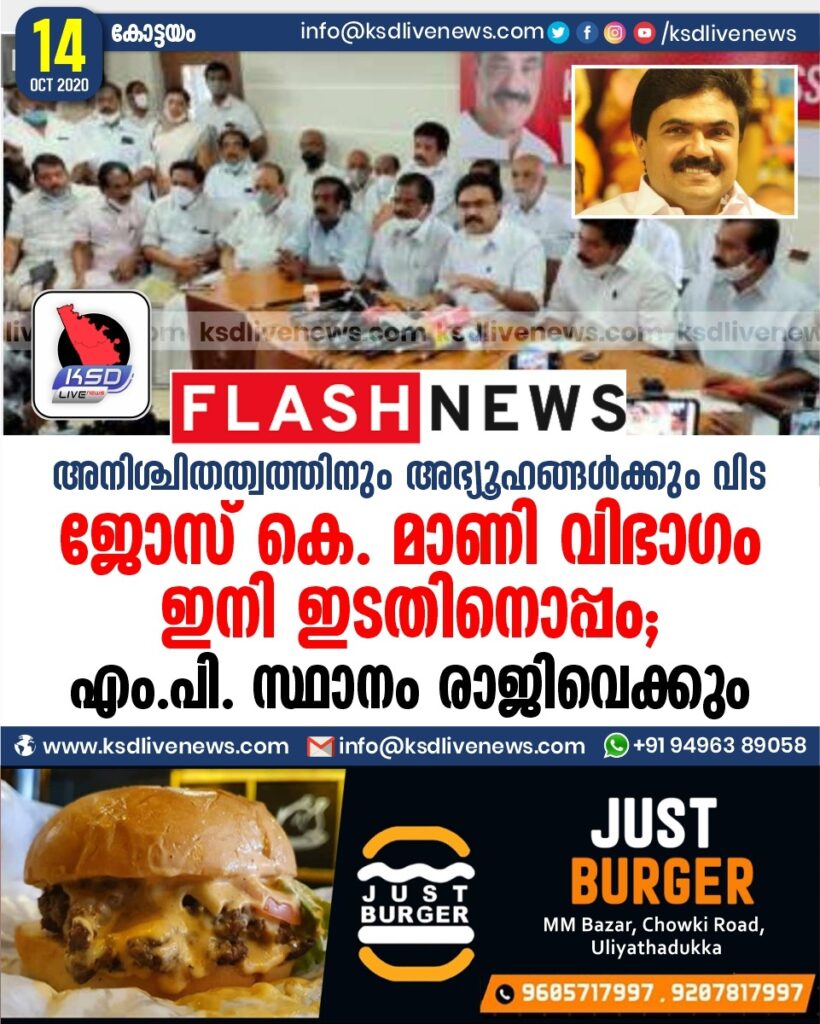 ജോസ് കെ. മാണി വിഭാഗം ഇനി ഇടതിനൊപ്പം ; എം.പി. സ്ഥാനം രാജിവെക്കും