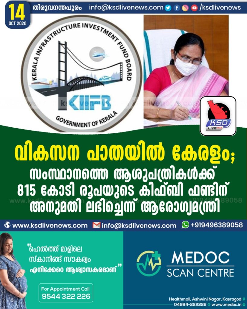 വികസന പാതയിൽ കേരളം ; സംസ്ഥാനത്തെ ആശുപത്രികൾക്ക് 815 കോടി രൂപയുടെ കിഫ്ബി ഫണ്ടിന് അനുമതി ലഭിച്ചെന്ന് ആരോഗ്യമന്ത്രി