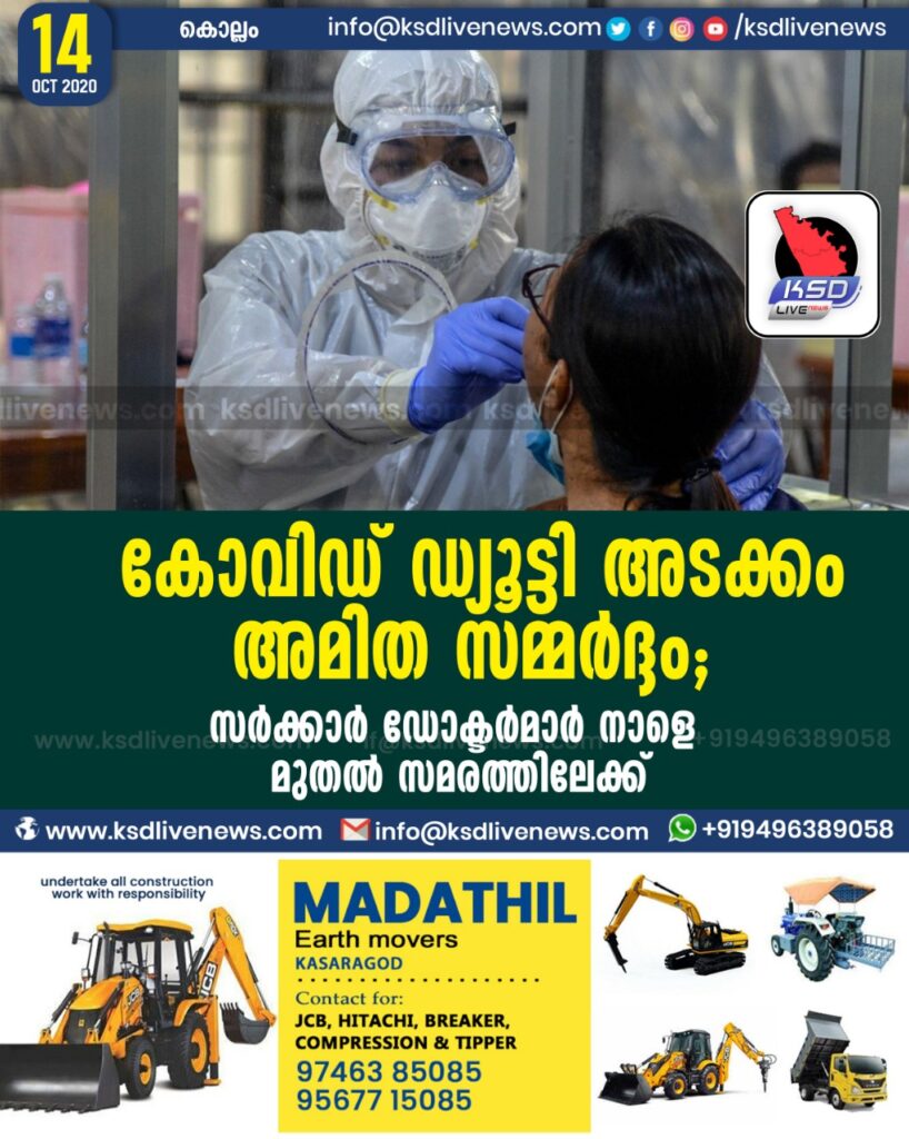 കോവിഡ് ഡ്യൂട്ടി അടക്കം അമിത സമ്മർദ്ദം ; സർക്കാർ ഡോക്ടർമാർ നാളെ മുതൽ സമരത്തിലേക്ക്