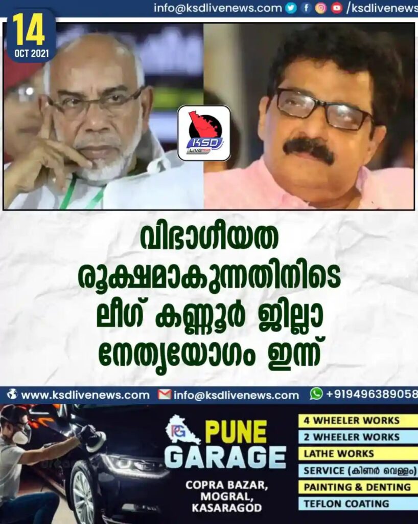 വിഭാഗീയത രൂക്ഷമാകുന്നതിനിടെ ലീഗ് കണ്ണൂര് ജില്ലാ നേതൃയോഗം ഇന്ന്