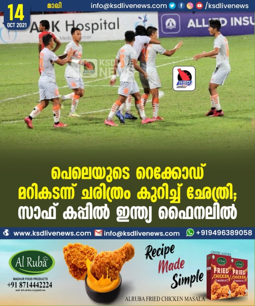 പെലെയുടെ റെക്കോഡ് മറികടന്ന് ചരിത്രം കുറിച്ച് ഛേത്രി, സാഫ് കപ്പില്‍ ഇന്ത്യ ഫൈനലില്‍