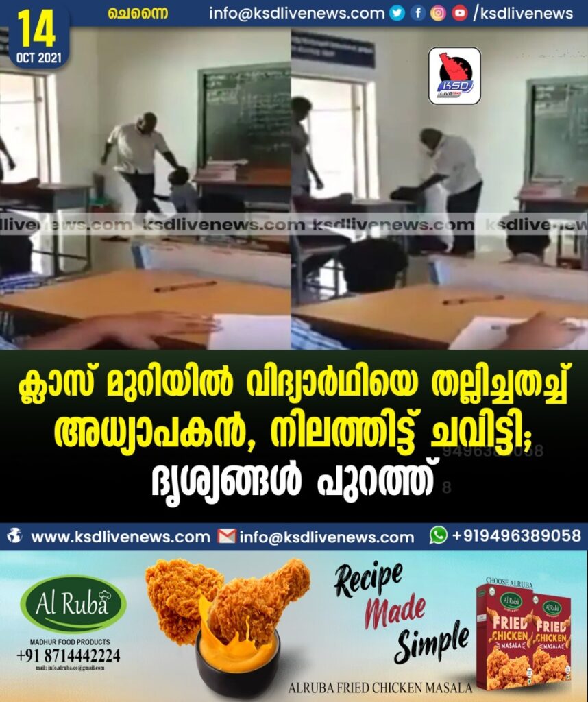 ക്ലാസ് മുറിയില്‍ വിദ്യാര്‍ഥിയെ തല്ലിച്ചതച്ച് അധ്യാപകന്‍, നിലത്തിട്ട് ചവിട്ടി; ദൃശ്യങ്ങള്‍ പുറത്ത്