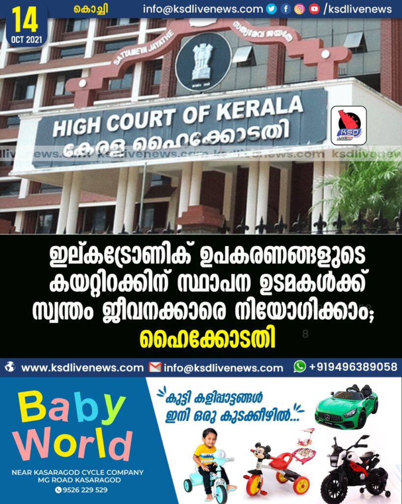 ഇല്കട്രോണിക് ഉപകരണങ്ങളുടെ കയറ്റിറക്കിന് സ്ഥാപന ഉടമകള്ക്ക് സ്വന്തം ജീവനക്കാരെ നിയോഗിക്കാം; ഹൈക്കോടതി