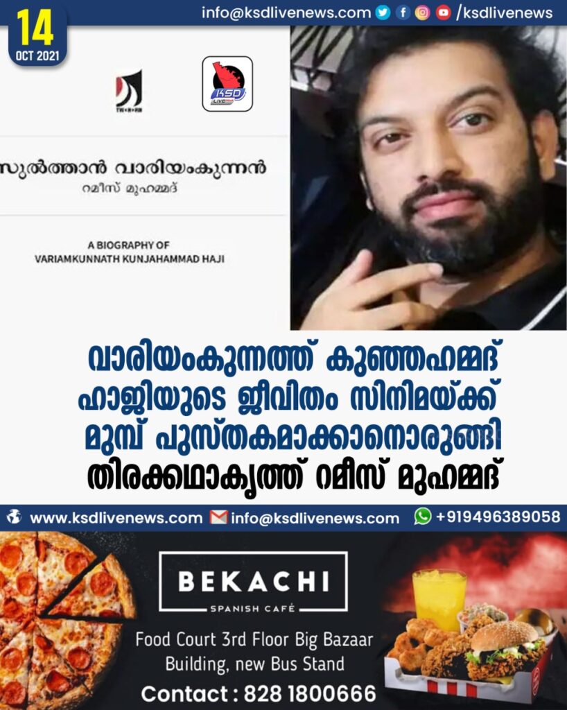 വാരിയംകുന്നത്ത് കുഞ്ഞഹമ്മദ് ഹാജിയുടെ ജീവിതം സിനിമയ്ക്ക് മുമ്ബ് പുസ്തകമാക്കാനൊരുങ്ങി തിരക്കഥാകൃത്ത് റമീസ് മുഹമ്മദ്