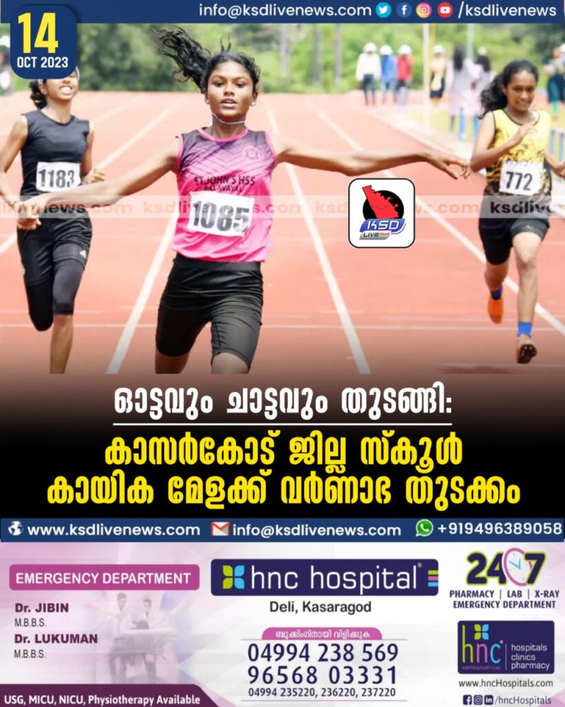 ഓട്ടവും ചാട്ടവും തുടങ്ങി; കാസർകോട് ജില്ല സ്കൂൾ കായിക മേളക്ക് വർണാഭ തുടക്കം