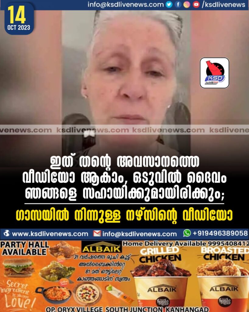 ഇത് തന്റെ അവസാനത്തെ വീഡിയോ ആകാം, ഒടുവില് ദൈവം ഞങ്ങളെ സഹായിക്കുമായിരിക്കും; ഗാസയില് നിന്നുള്ള നഴ്സിന്റെ വീഡിയോ