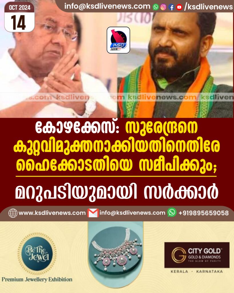 കോഴക്കേസ്: സുരേന്ദ്രനെ കുറ്റവിമുക്തനാക്കിയതിനെതിരേ ഹൈക്കോടതിയെ സമീപിക്കും; മറുപടിയുമായി സർക്കാർ