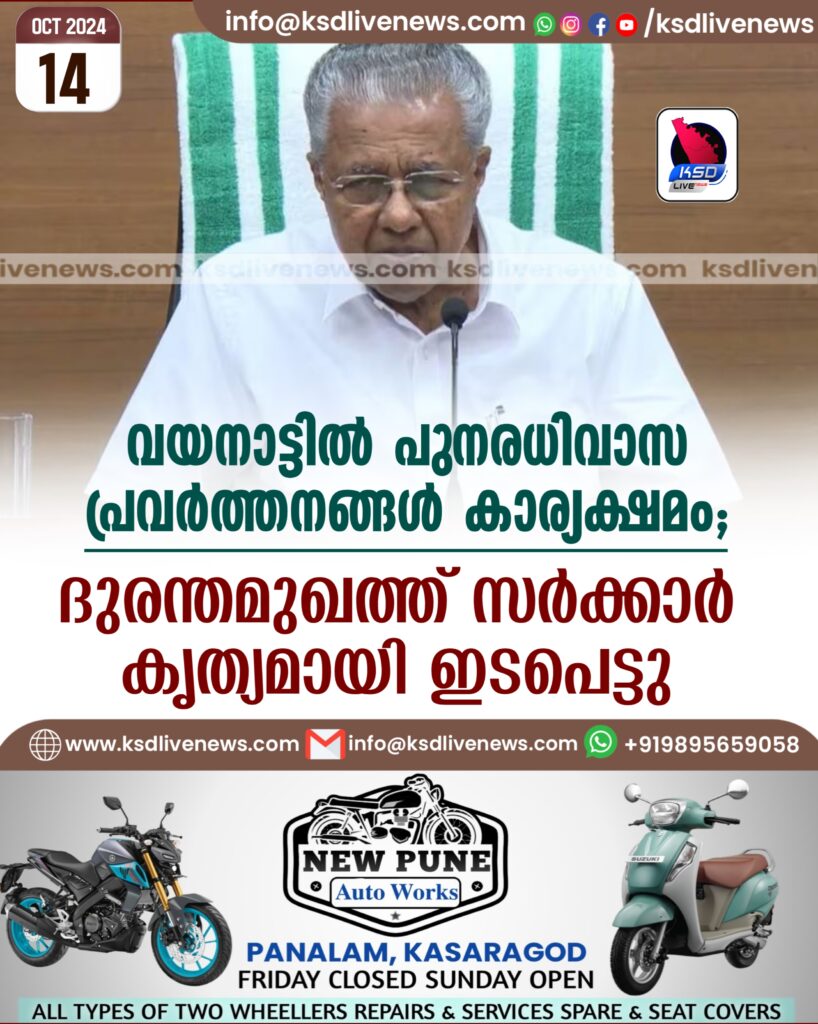 വയനാട്ടില് പുനരധിവാസ പ്രവര്ത്തനങ്ങള് കാര്യക്ഷമം, ദുരന്തമുഖത്ത് സര്ക്കാര് കൃത്യമായി ഇടപെട്ടു’