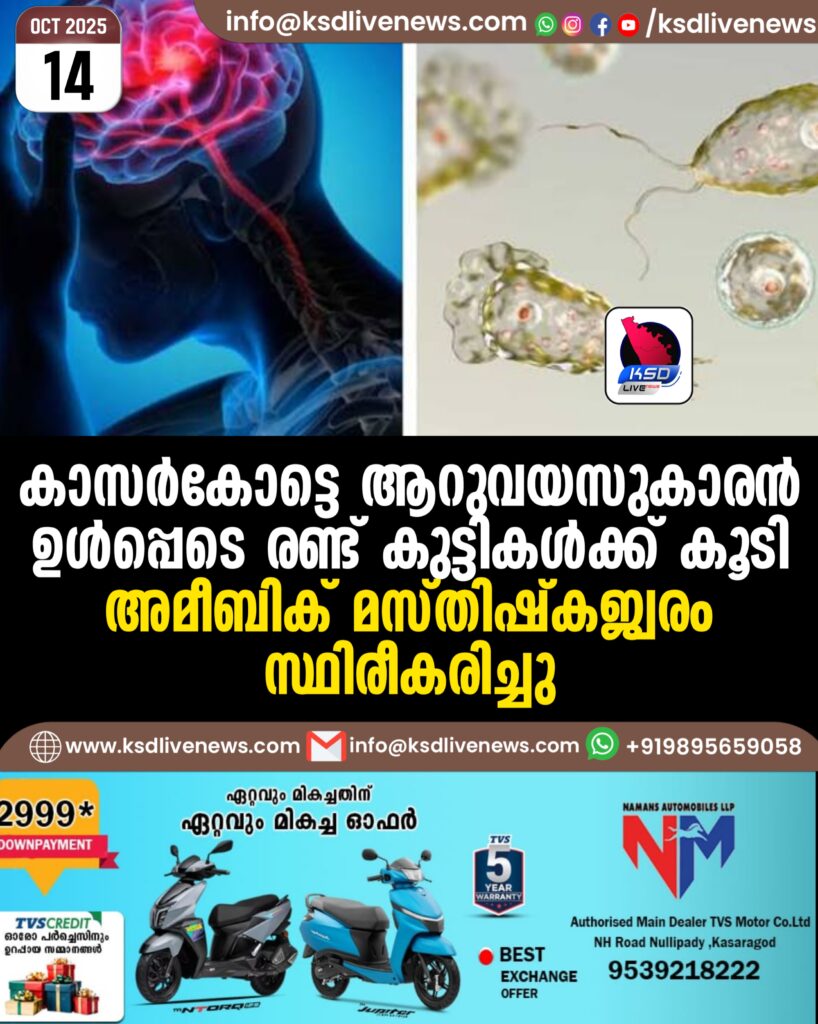 കാസര്കോട്ടെ ആറുവയസുകാരന് ഉള്പ്പെടെ രണ്ട് കുട്ടികള്ക്ക് കൂടി അമീബിക് മസ്തിഷ്കജ്വരം സ്ഥിരീകരിച്ചു