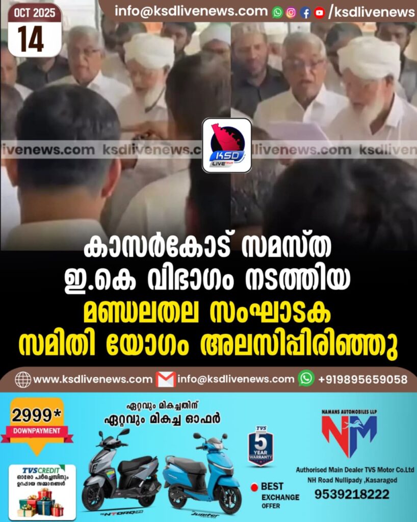 കാസർകോട് സമസ്ത ഇ.കെ വിഭാഗം നടത്തിയ മണ്ഡലതല സംഘാടക സമിതി യോഗം അലസിപ്പിരിഞ്ഞു