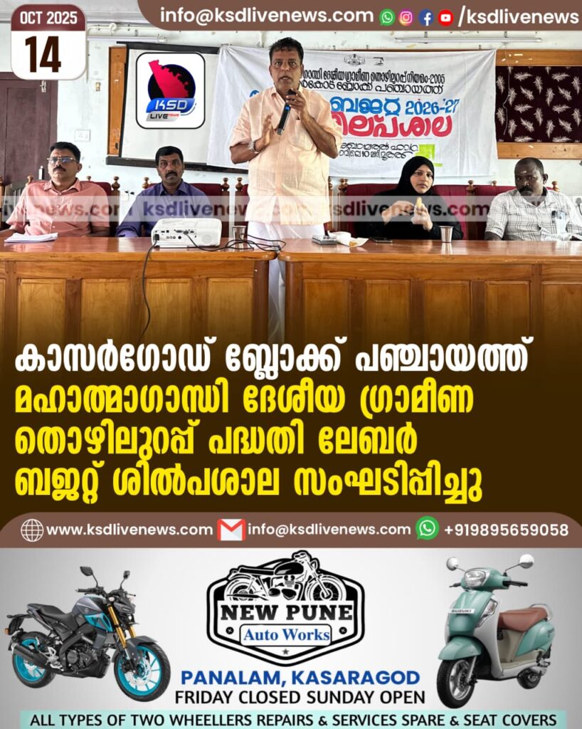 കാസർഗോഡ് ബ്ലോക്ക് പഞ്ചായത്ത് മഹാത്മാഗാന്ധി ദേശീയ ഗ്രാമീണ തൊഴിലുറപ്പ് പദ്ധതി ലേബർ ബജറ്റ് ശില്പശാല സംഘടിപ്പിച്ചു