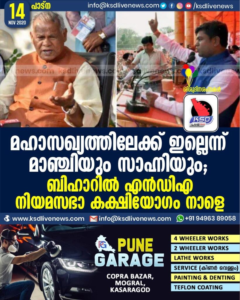 മഹാസഖ്യത്തിലേക്ക് ഇല്ലെന്ന് മാഞ്ചിയും സാഹ്നിയും ; ബിഹാറിൽ എൻഡിഎ നിയമസഭാ കക്ഷിയോഗം നാളെ