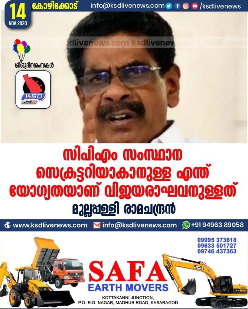 കോഴിക്കോട്: സിപിഎം സംസ്ഥാന സെക്രട്ടറിയാകാനുള്ള എന്ത് യോഗ്യതയാണ് വിജയരാഘവനുള്ളതെന്ന് മുല്ലപ്പള്ളി രാമചന്ദ്രന്.