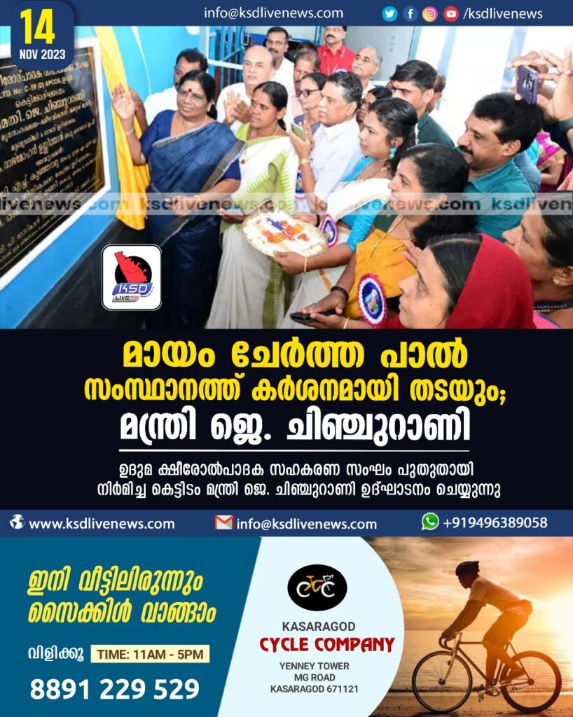മായംചേര്ത്ത പാല് സംസ്ഥാനത്ത് കർശനമായി തടയും -മന്ത്രി ജെ. ചിഞ്ചുറാണി