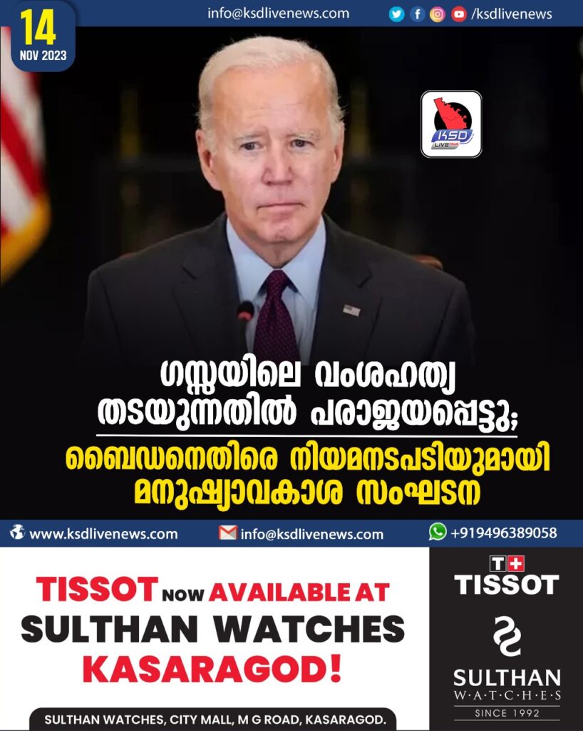ഗസ്സയിലെ വംശഹത്യ തടയുന്നതില് പരാജയപ്പെട്ടു; ബൈഡനെതിരെ നിയമനടപടിയുമായി മനുഷ്യാവകാശ സംഘടന