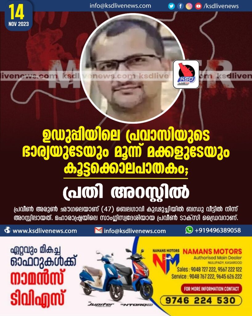 ഉഡുപ്പിയിലെ പ്രവാസിയുടെ ഭാര്യയുടേയും മൂന്ന് മക്കളുടേയും കൂട്ടക്കൊലപാതകം; പ്രതി അറസ്റ്റില്‍