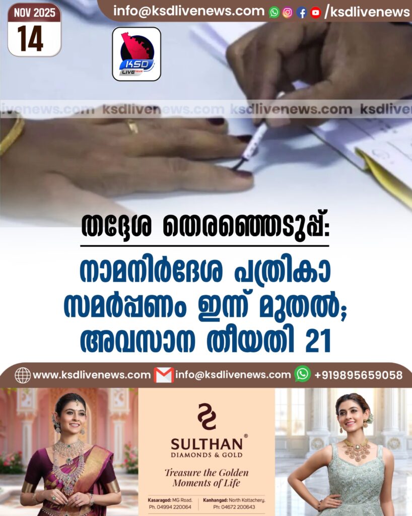 തദ്ദേശ തെരഞ്ഞെടുപ്പ്: നാമനിര്ദേശ പത്രികാ സമര്പ്പണം ഇന്ന് മുതല്; അവസാന തീയതി 21