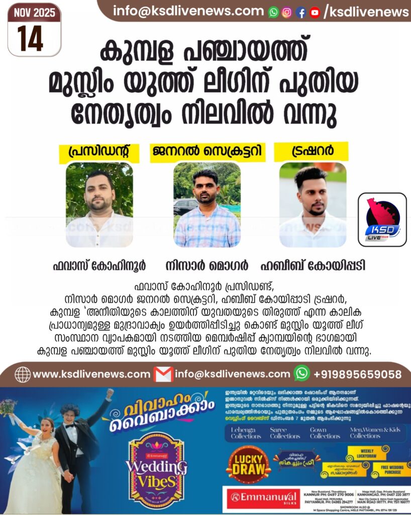 കുമ്പള പഞ്ചായത്ത് മുസ്ലിം യൂത്ത് ലീഗിന് പുതിയ നേതൃത്വം