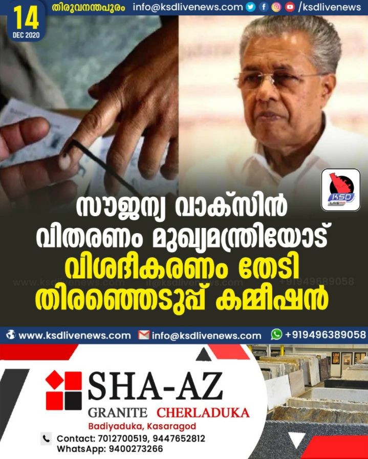 സൗജന്യ വാക്സിൻ വിതരണം മുഖ്യമന്ത്രിയോട് വിശദീകരണം തേടി തിരഞ്ഞെടുപ്പ് കമ്മീഷൻ