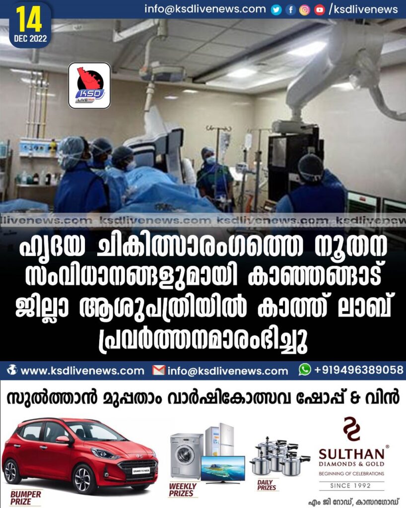 ഹൃദയ ചികിത്സാരംഗത്തെ നൂതന സംവിധാനങ്ങളുമായി കാഞ്ഞങ്ങാട് ജില്ലാ ആശുപത്രിയില് കാത്ത് ലാബ് പ്രവര്ത്തനമാരംഭിച്ചു